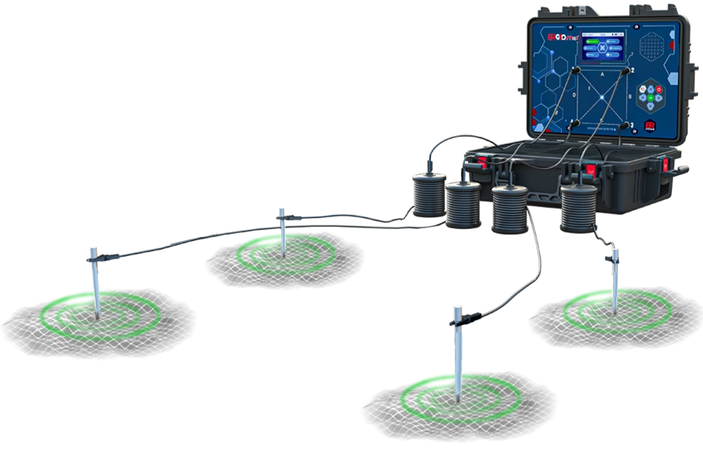 Measures soil electrical resistance to accurately identify the location, depth, salinity, and density of groundwater.