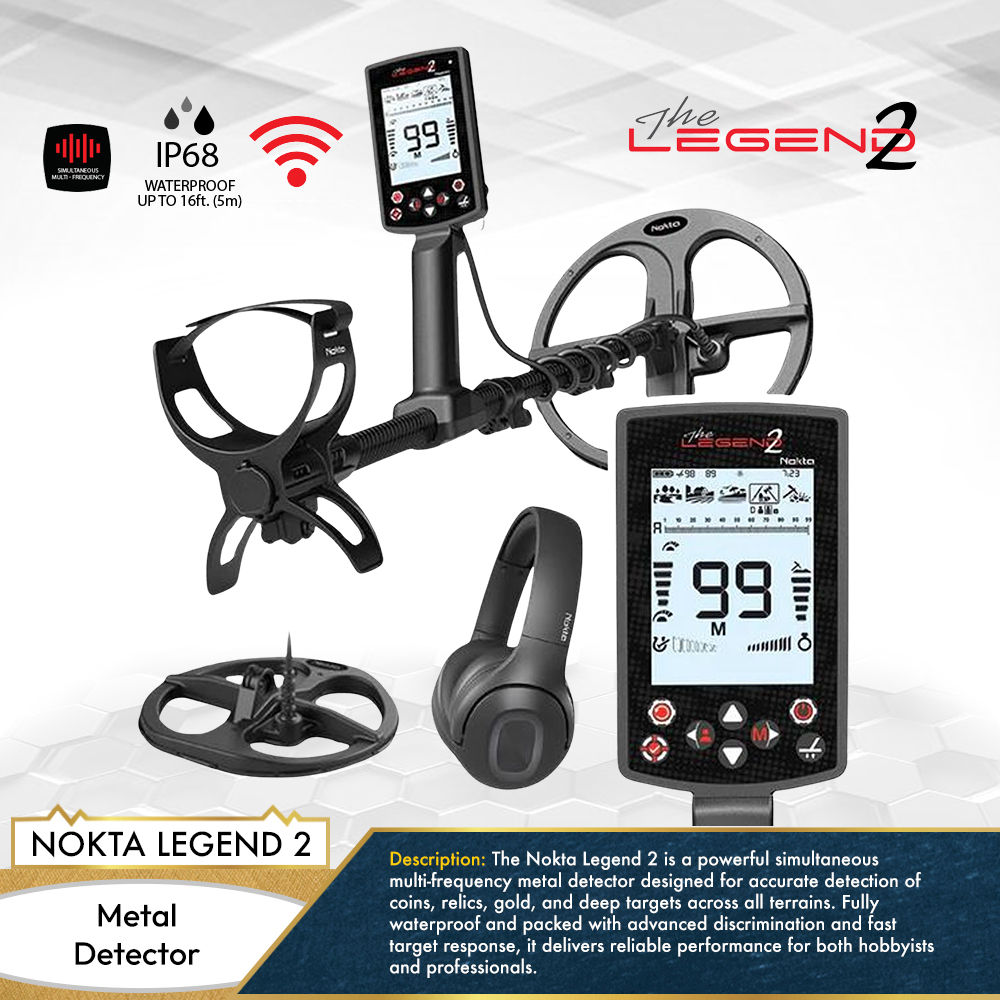 From parks and fields to beaches, relic sites, and gold-bearing ground, the Nokta Legend 2 automatically adapts to any environment through its powerful simultaneous multi-frequency technology. Offering selectable frequencies of 4, 10, 15, 20, and 40 kHz along with advanced audio customization, it delivers outstanding versatility for a wide range of detecting conditions.