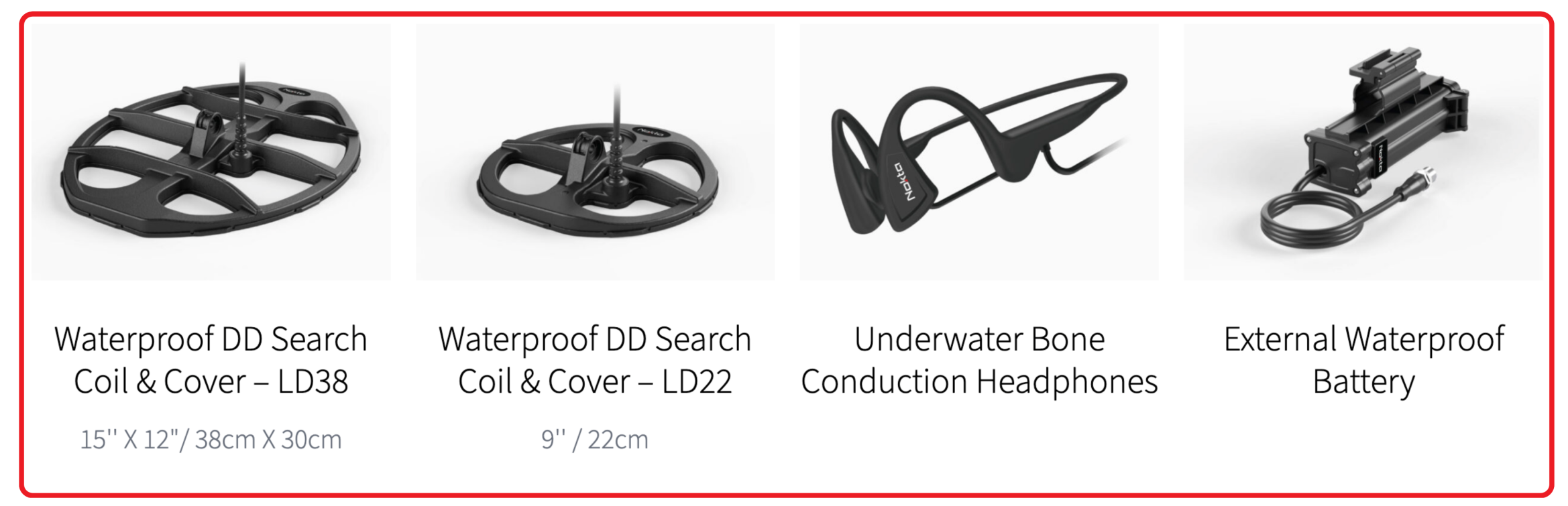 PACKAGE CONTENTS: 2 WATERPROOF DD SEARCH COILS & COVERS
