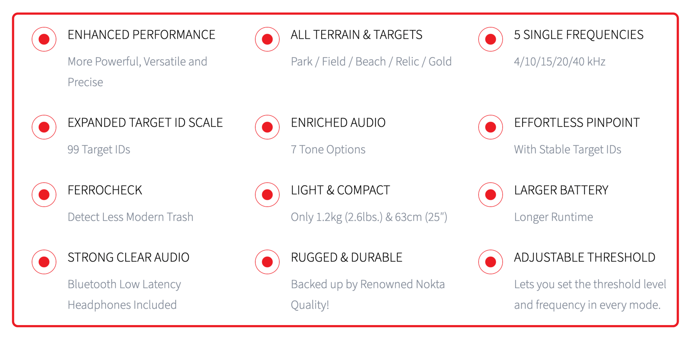 The Legend 2 delivers a wide range of enhancements, making it an excellent choice for anyone seeking a powerful multi-frequency detector that satisfies both newcomers and experienced users: