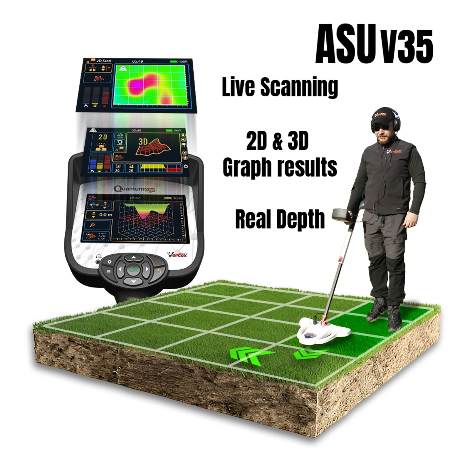Das Herzstück von Quantum LITE ist die bahnbrechende Active Sensing Unit (ASU V35) , die für unübertroffene Präzision bei der Metalldetektion entwickelt wurde. Diese bahnbrechende Technologie ist in der Lage, sowohl neu abgelagerte als auch alte Metalle mit außergewöhnlicher Genauigkeit zu identifizieren.